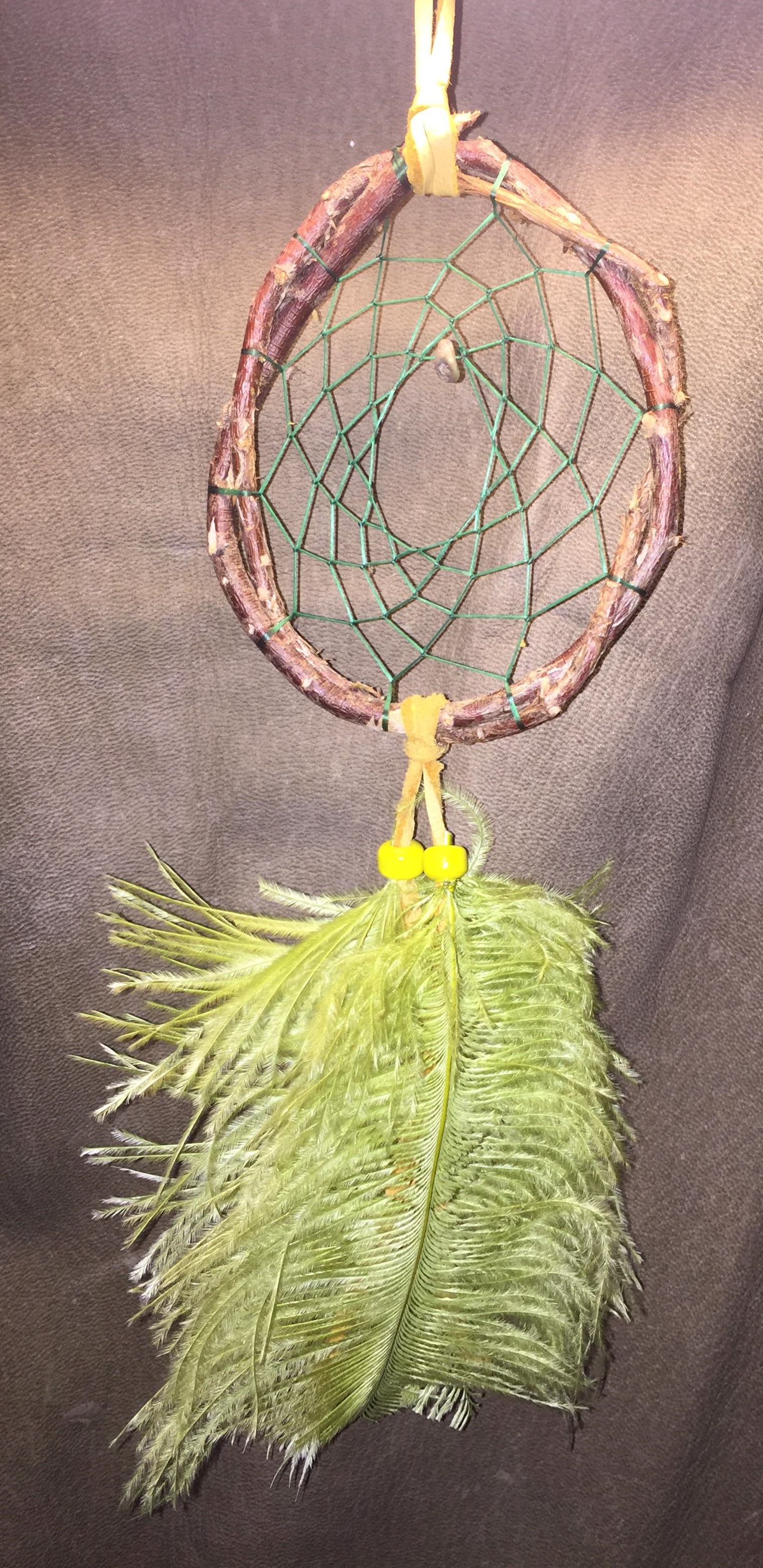 This 2 feathered dream catcher has a 4