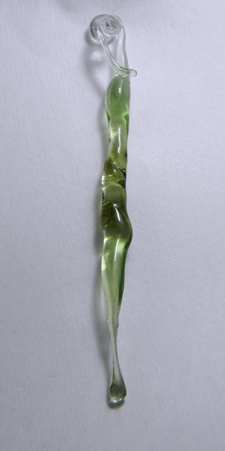 This lovingly handcrafted icicle measures 4 1/4 inches long and the hook measures 1/4 inch.