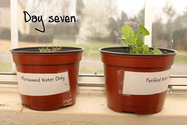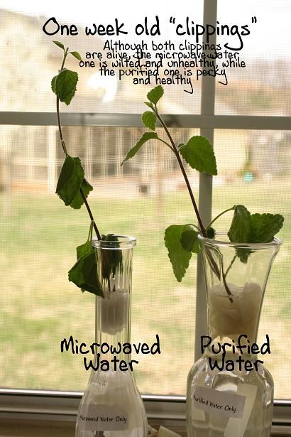Microwaved Water - See What It Does To Plants Below is a science fair project. In it she took filtered water